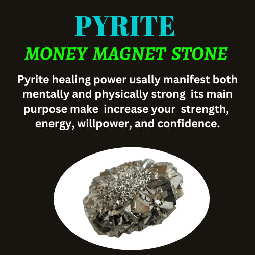 - This crystal is for money and abundance. Pyrite attracts money, it’s known to be a money magnet. According to Crystal healing, having this crystal with you attracts wealth and fame.